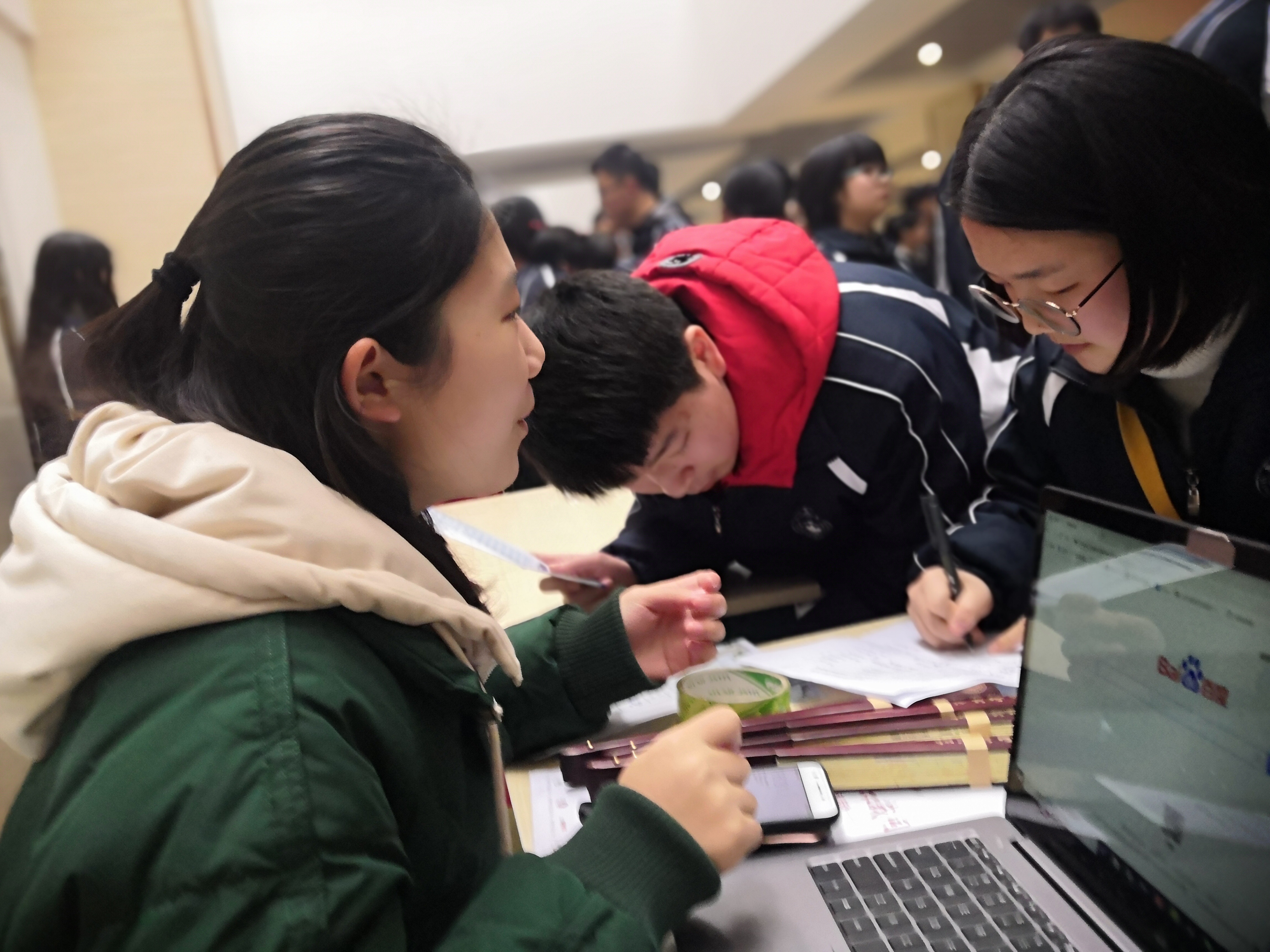 随后,多位对哲学学科感兴趣的同学就哲学有关问题提出了许多疑惑,如学科优势、学科内容、就业前景。小组成员们积极回答,为同学们答疑,了解具体情况。