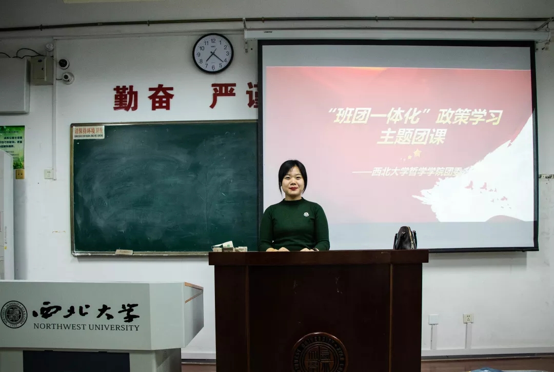 2019年12月17日晚,437必赢会员中心本科2018级哲学与社会工作团支部在1205教室召开了“班团一体化政策学习”主题团课,邀请到院团委书记李鑫老师为大家上团课。本次团课旨在促进团支部的凝聚力,引导同学们进一步深入了解“班团一体化”,积极投身“班团一体化建设”