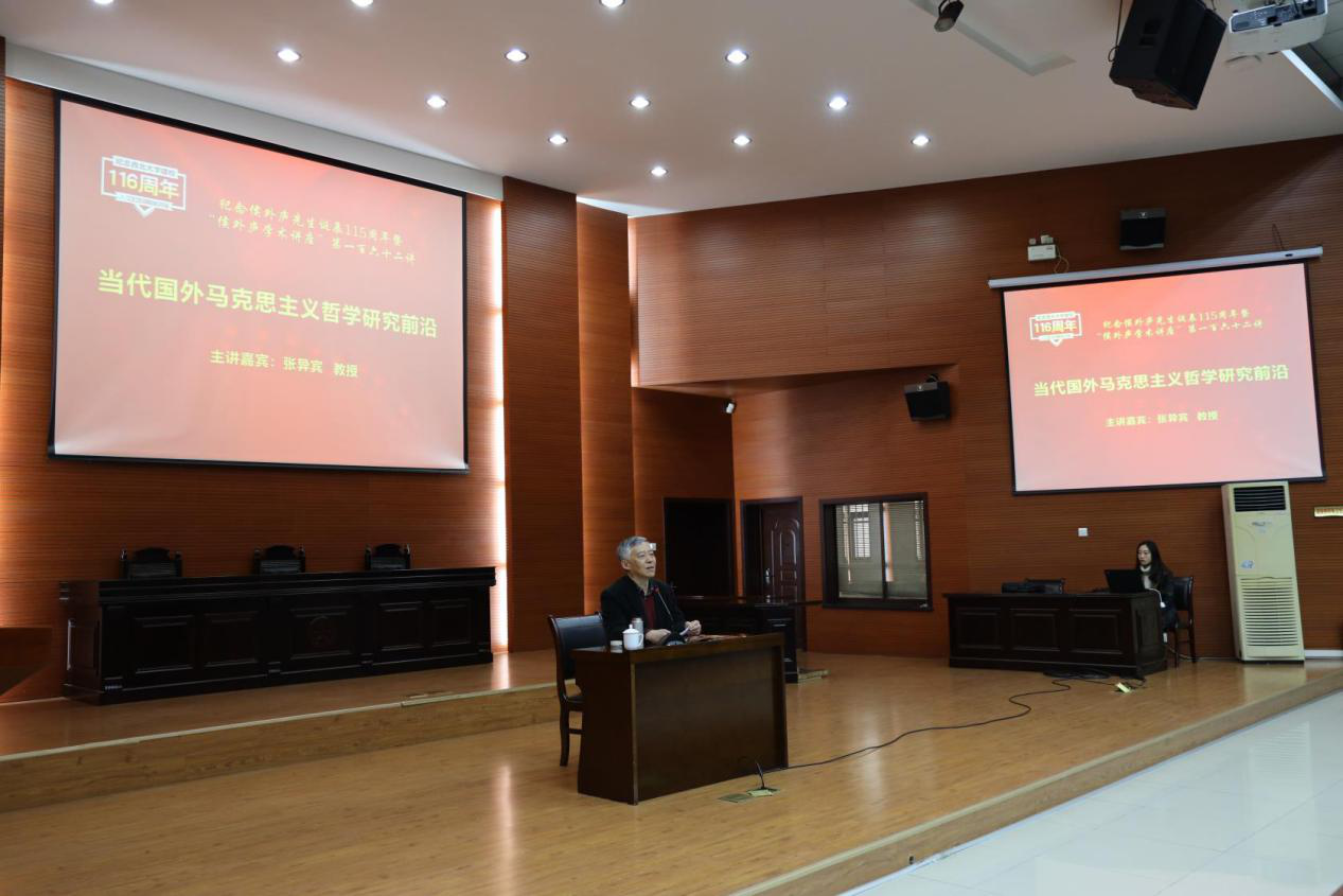 受聘仪式结束后,张异宾教授做了题为《当代国外马克思主义哲学研究前沿》的学术报告。此次讲座为“侯外庐学术讲座”第一百六十二