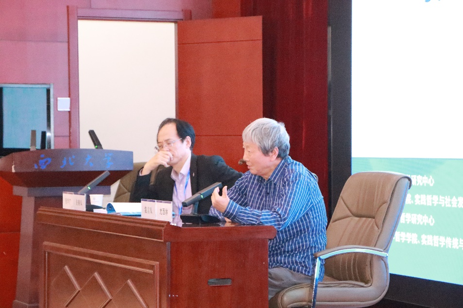 陕西师范大学雷龙乾以“实践哲学的基础涵义”为题阐述了实践哲学的三种涵义,即作为形而上学的辩证扬弃、广义上的一种新哲学观和狭义上的一种实践观哲学理论体系。